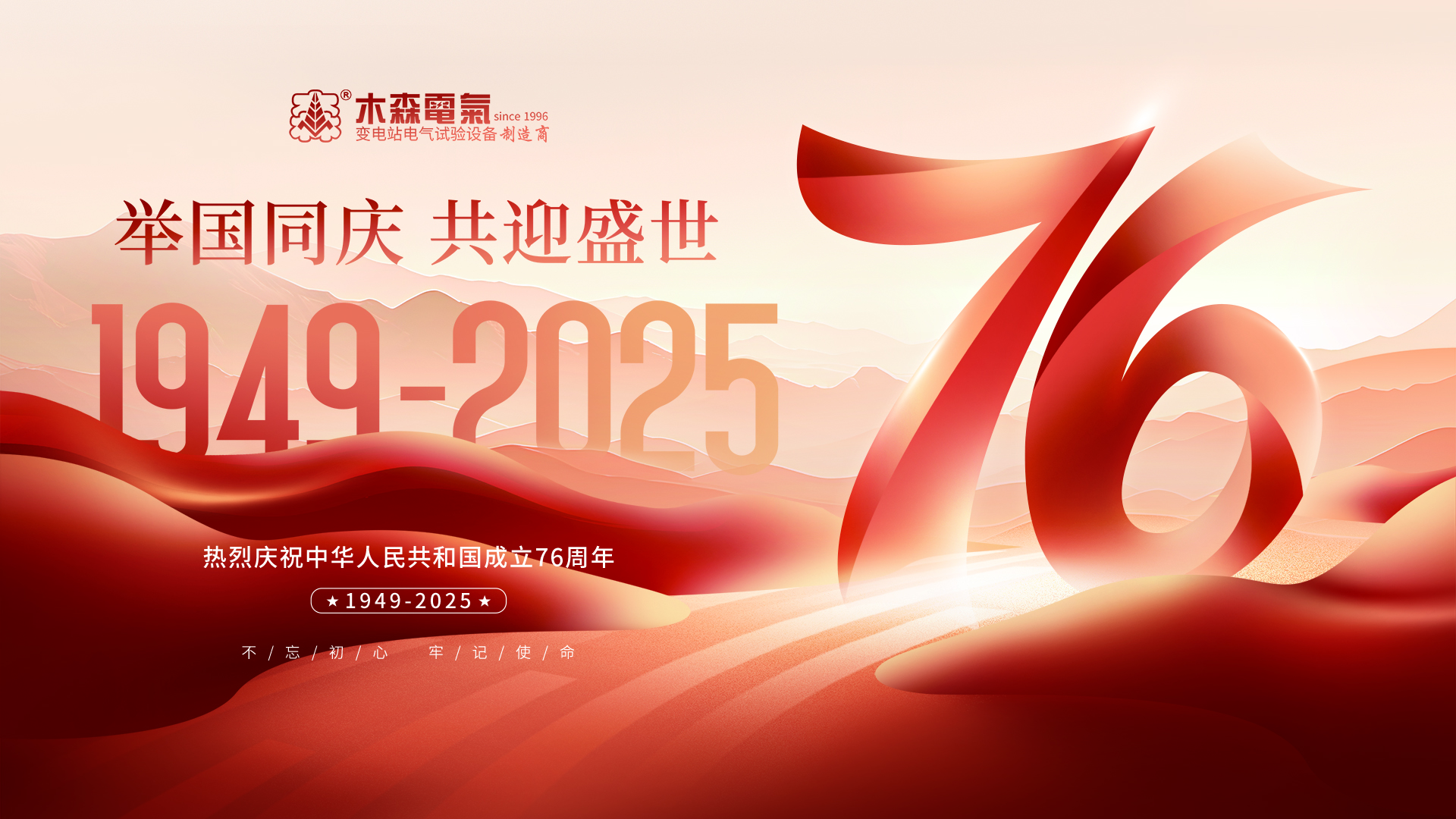 ??七十六載風(fēng)華正茂,九州方圓燈火輝煌。?? 值此中華人民共和國成立76周年國慶佳節(jié)來臨之際,武漢市木森電氣有限公司攜全體員工,向長期以來信賴與支持我司發(fā)展的各級電力單位、行業(yè)伙伴與廣大客戶,致以最崇高的敬意和最誠摯的節(jié)日祝福!